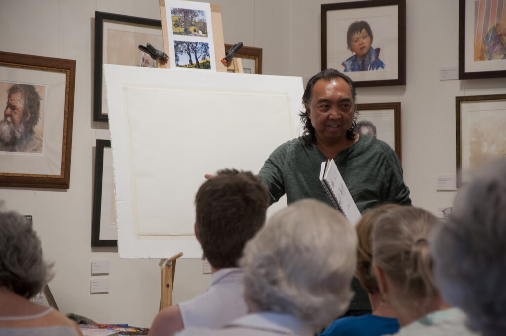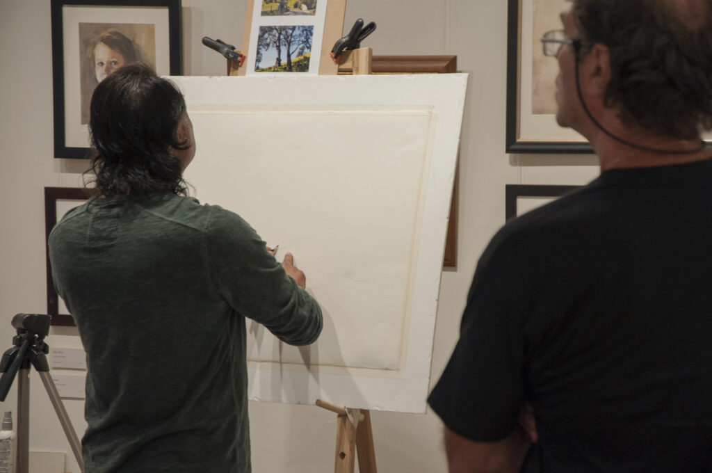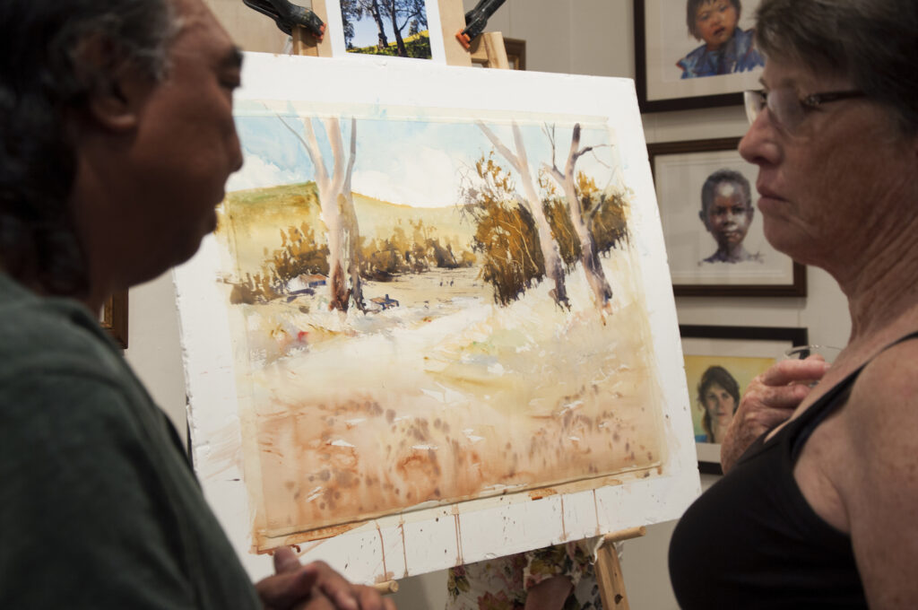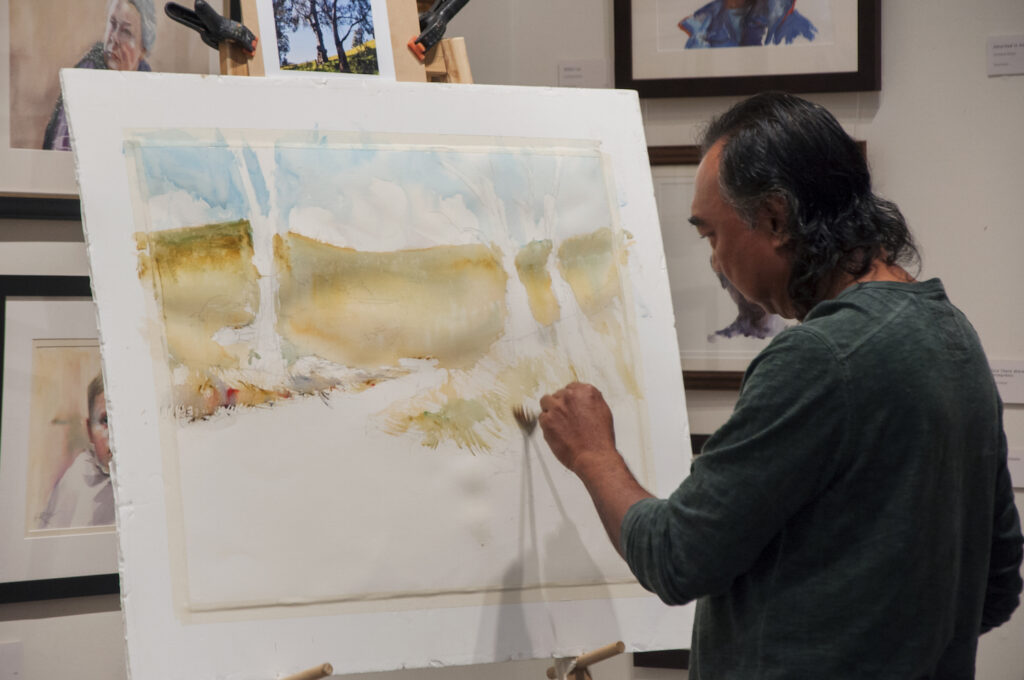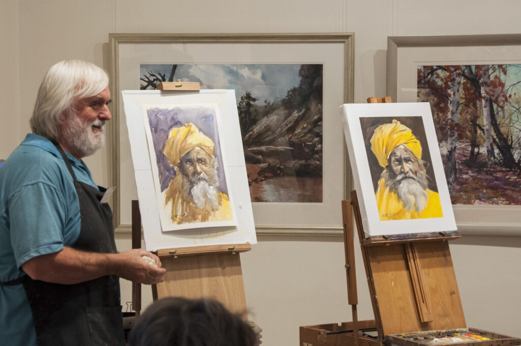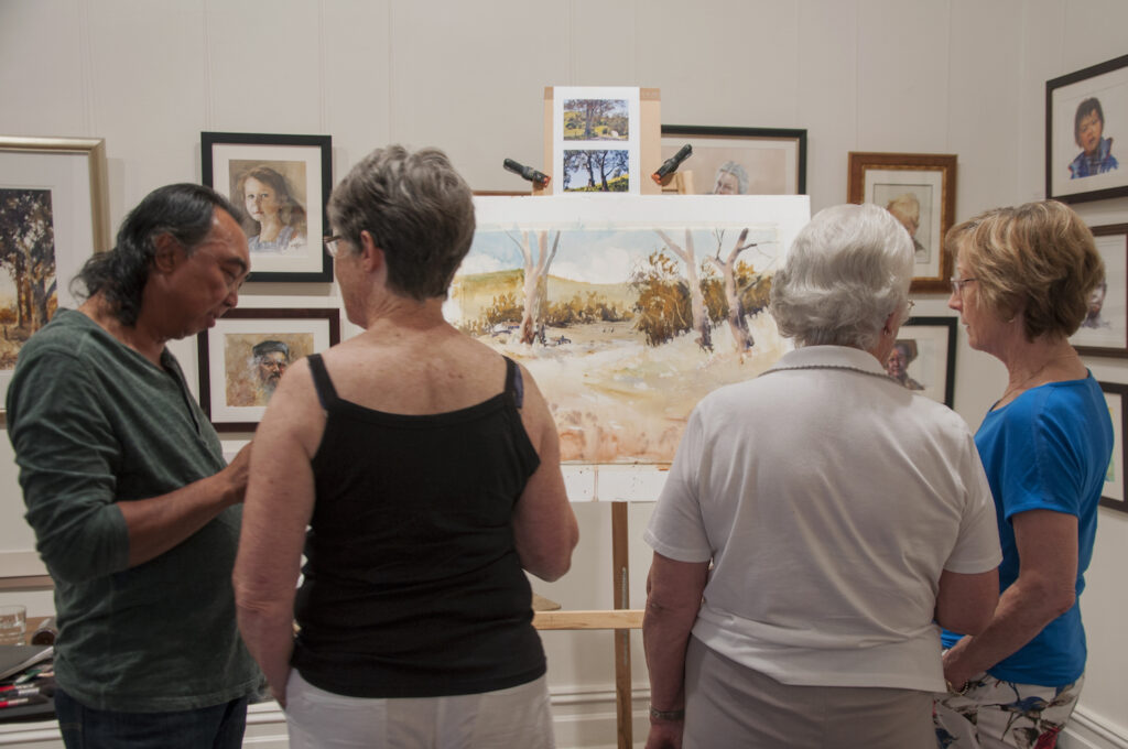 “The double demonstrations were wonderful. A marvellous experience to see two such professional artists at work, using oils and watercolour. Their camaraderie lent a relaxed atmosphere to the gallery and I think that everyone left feeling inspired and eager to get those paints out soon.